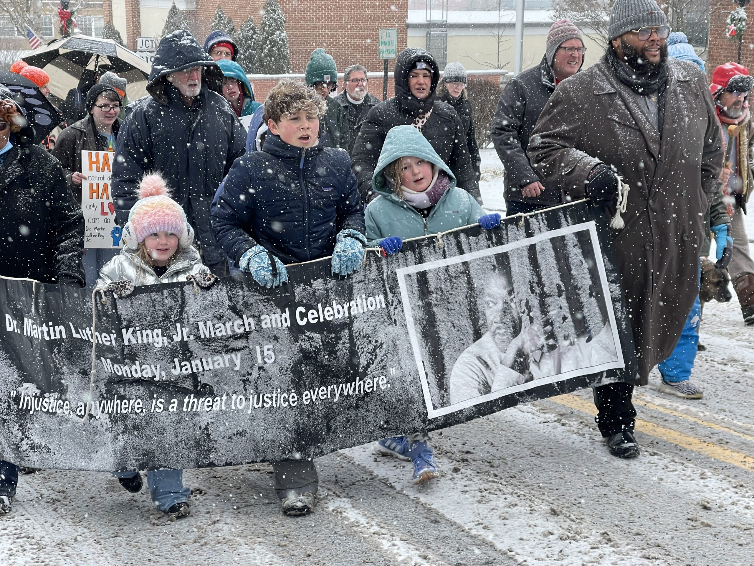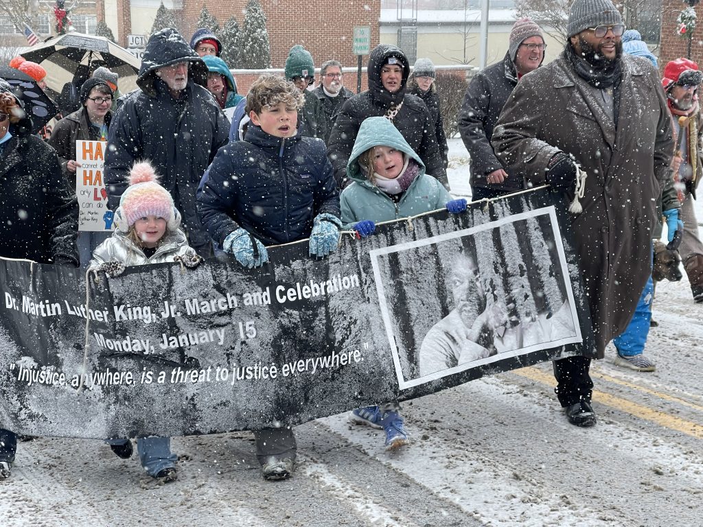 Last year, the march took place in the midst of a snowstorm, but despite the cold, the event was marked by a sense of solidarity as participants made their way to the Lewisburg United Methodist Church. Following the march, a free community lunch is held at LUMC before the program at the church begins. Wraps, chili, and cupcakes will be on the menu again this year.